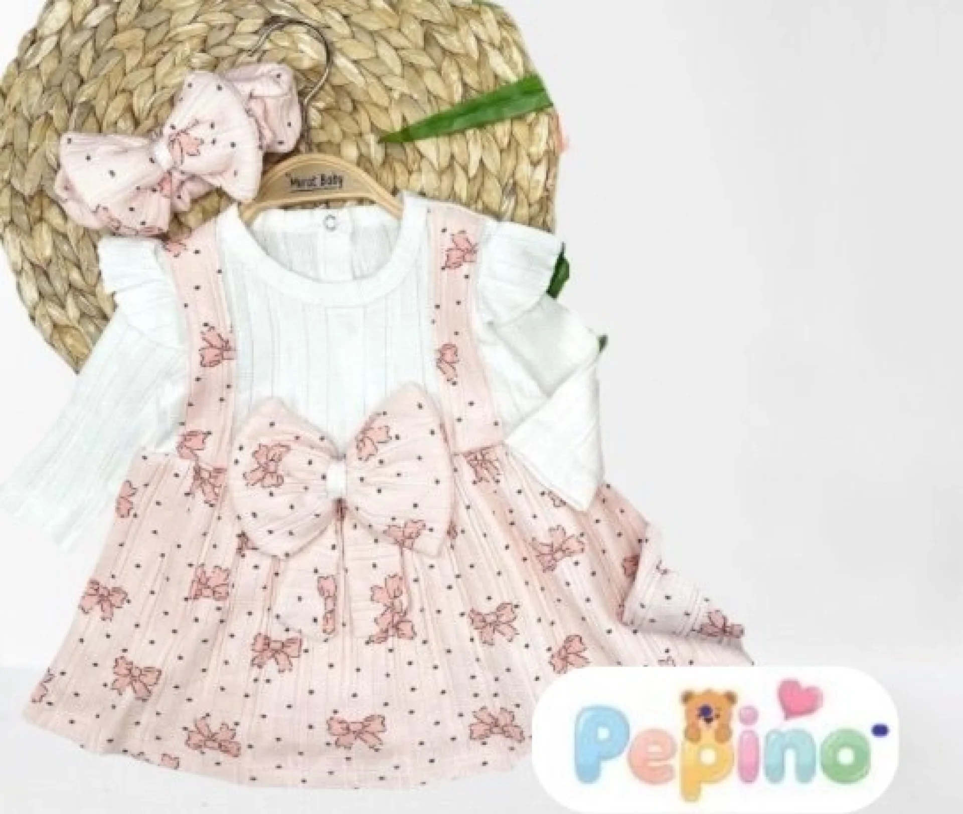 За допълване на елегантния стил на малката бебе-дама , към рокличката има и лента за глава в същия стил с панделка.