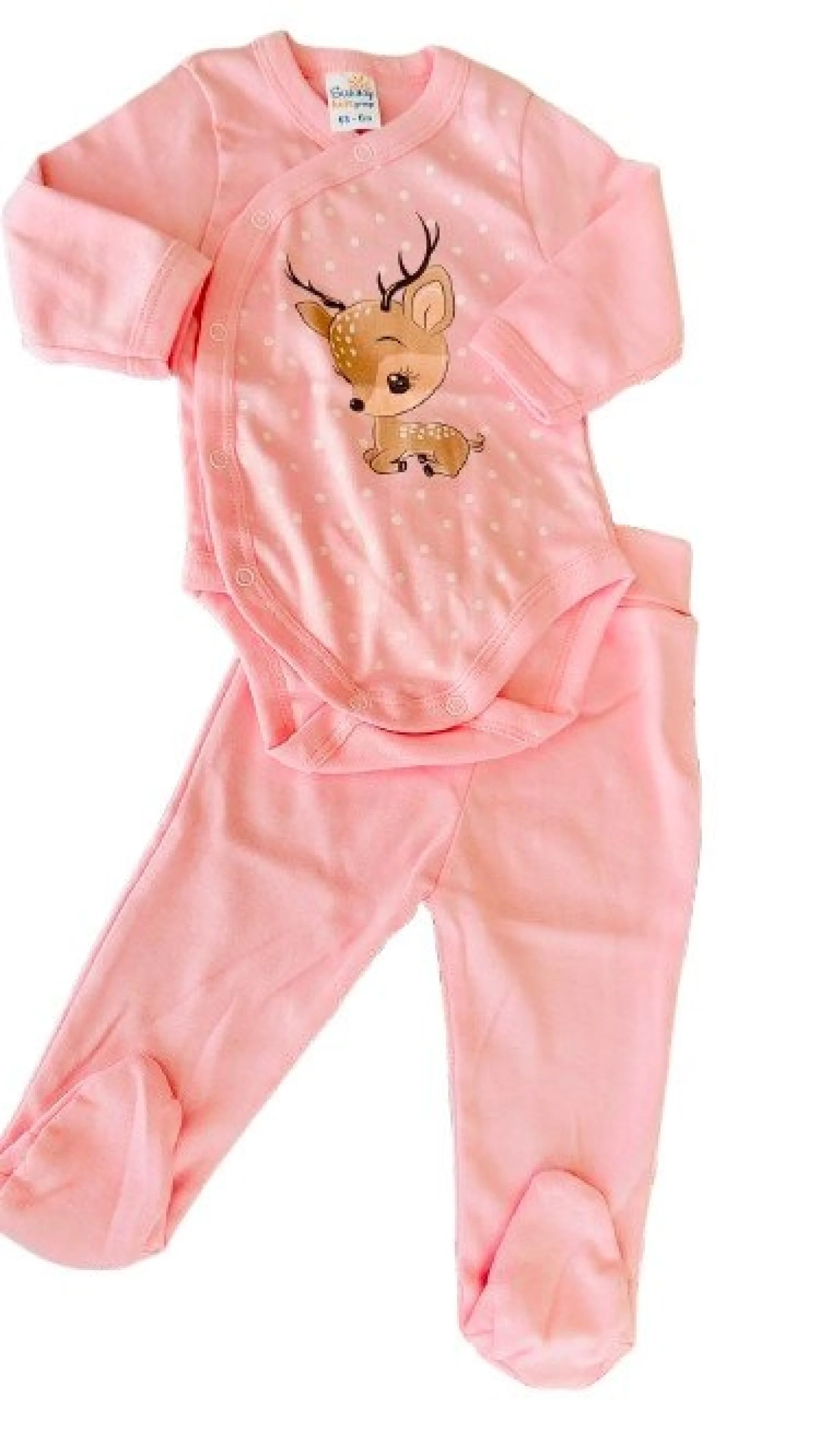 Бебешки комплект от боди с дълго ръкавче и ританка в розов цвят