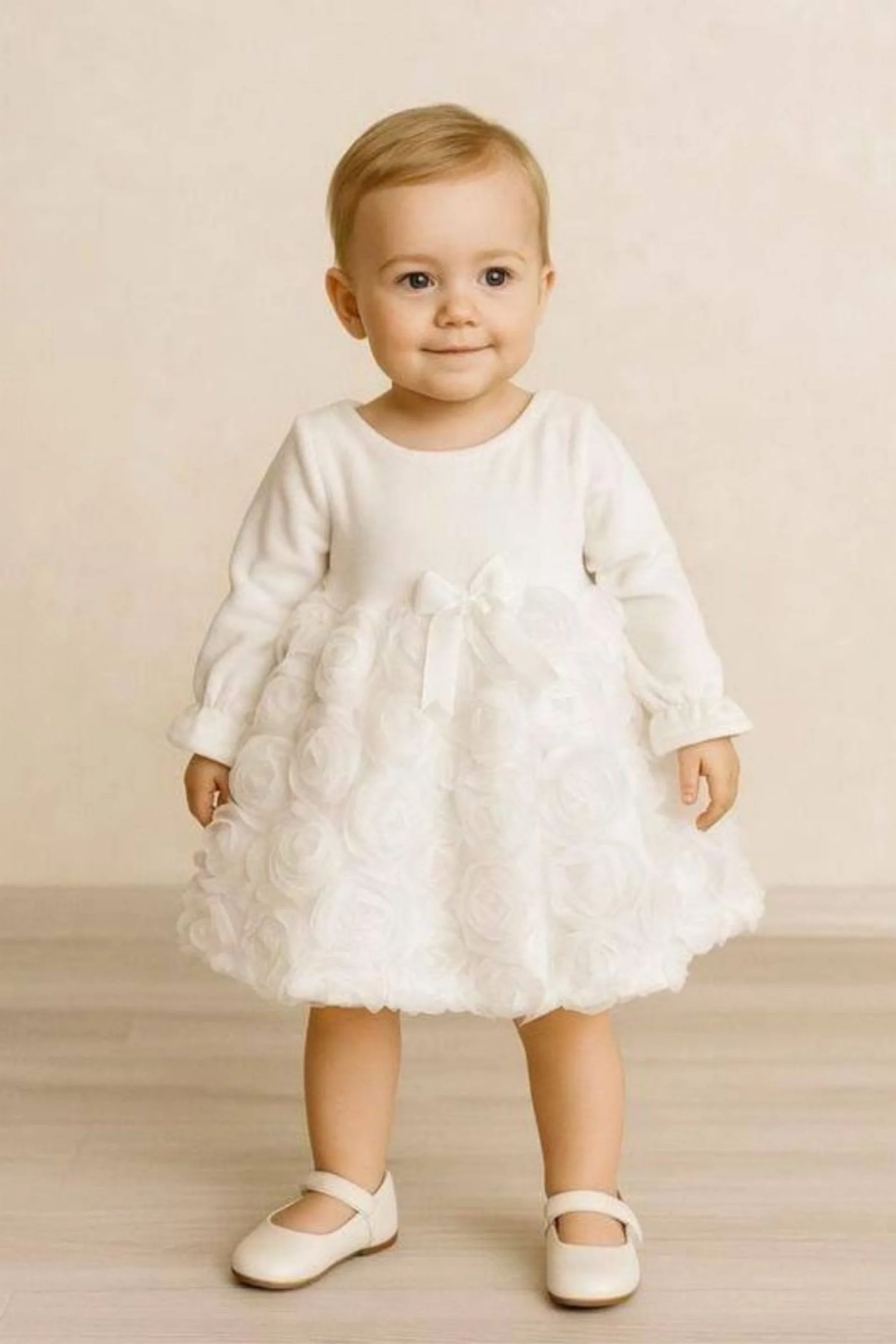 Бебешка рокля с дълаг ръкав в бял цвят .