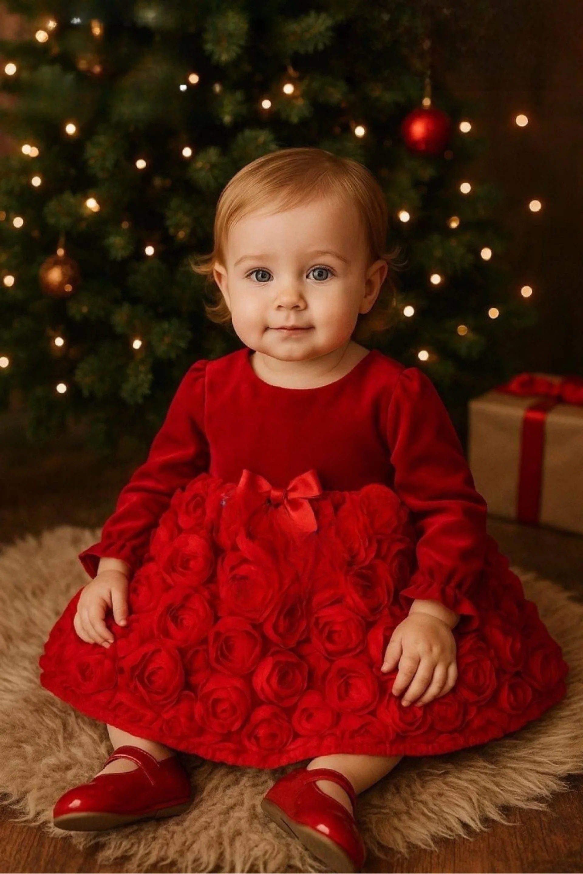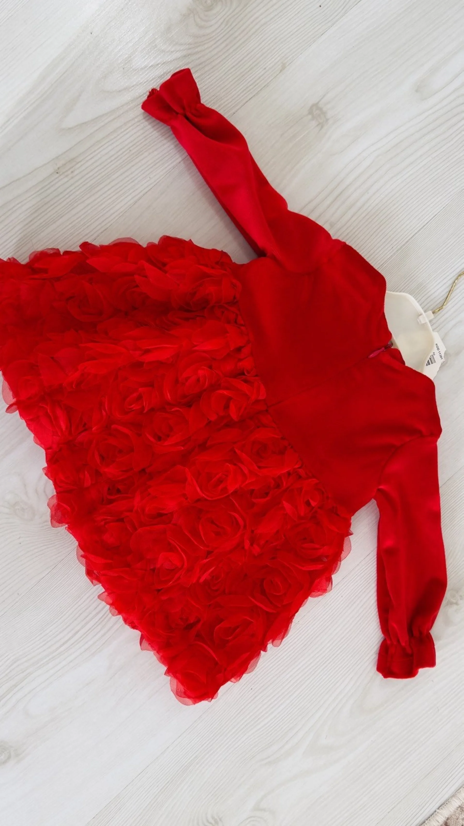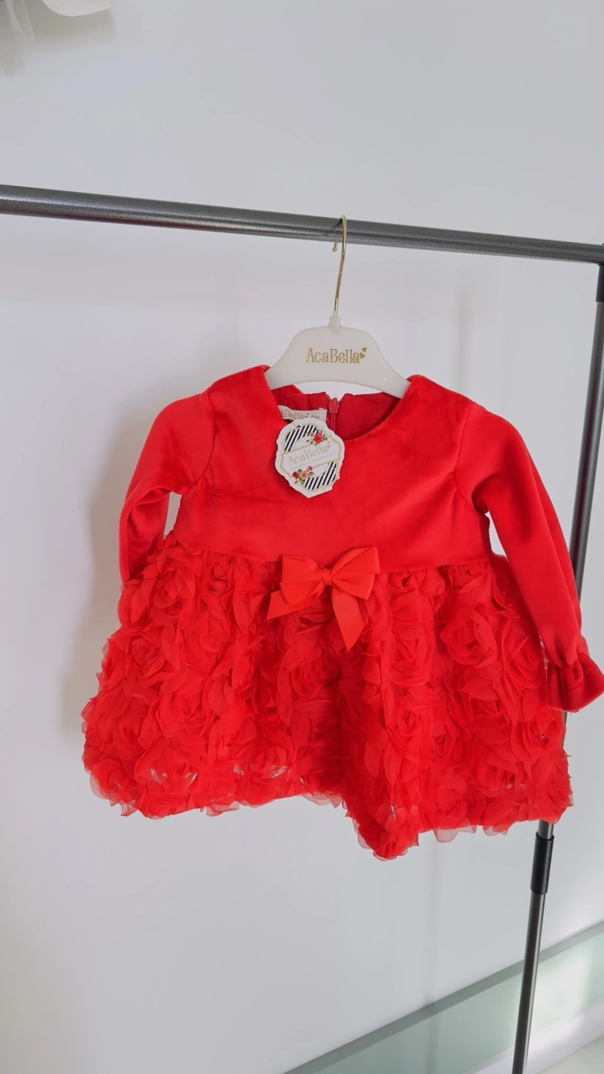 Бебешка рокля с дълаг ръкав в червен цвят .