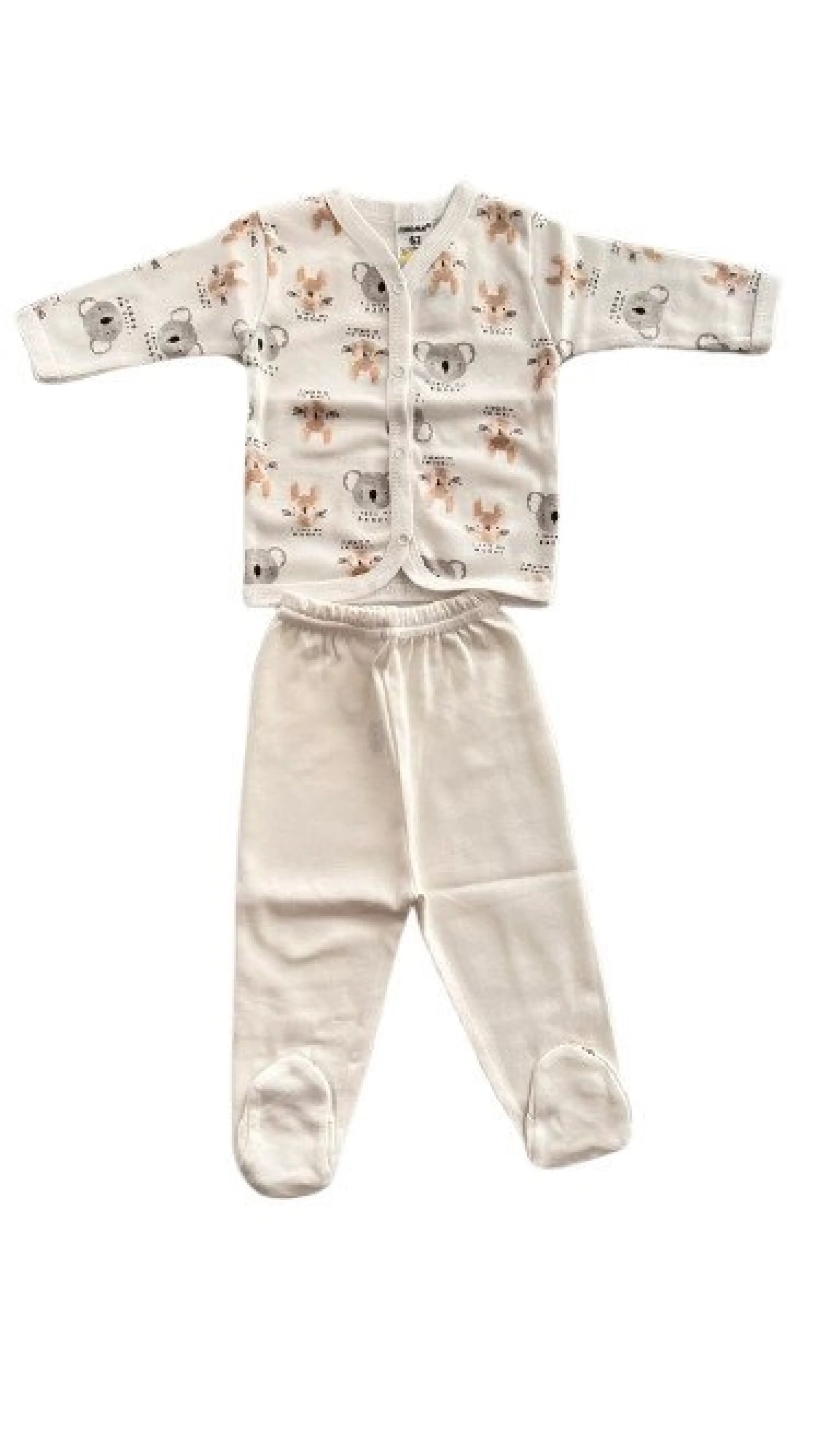 Памучен комплект от блузка с предно закопчаване с дълго ръкавче и ританка
